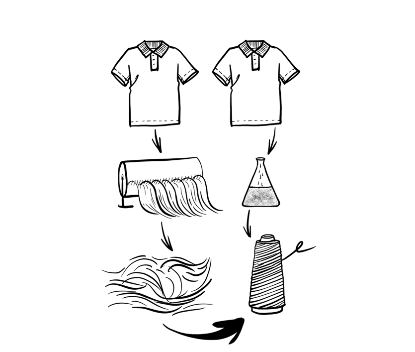 Zkoumáme také to, jak lze materiálu po skončení životnosti navrátit hodnotu. Mechanická recyklace rozvlákňuje textilie na novou surovinu a umožňuje jejich využití v netkaných textiliích, izolacích nebo při opětovném spřádání přízí. Chemická recyklace jde hlouběji – rozkládá materiály až na úroveň polymerů nebo celulózy a umožňuje vytvořit nová vlákna stejné kvality. Tato "fibre-to-fibre" cesta je klíčová pro budoucí cirkulární textilní průmysl, ale zatím naráží na řadu omezení: vysokou energetickou náročnost, chemické zatížení i zkracování makromolekul. Oba typy recyklace však ukazují, že textilie mohou mít druhý život – pokud jsou správně navrženy, materiálově čisté a vhodně tříděné.