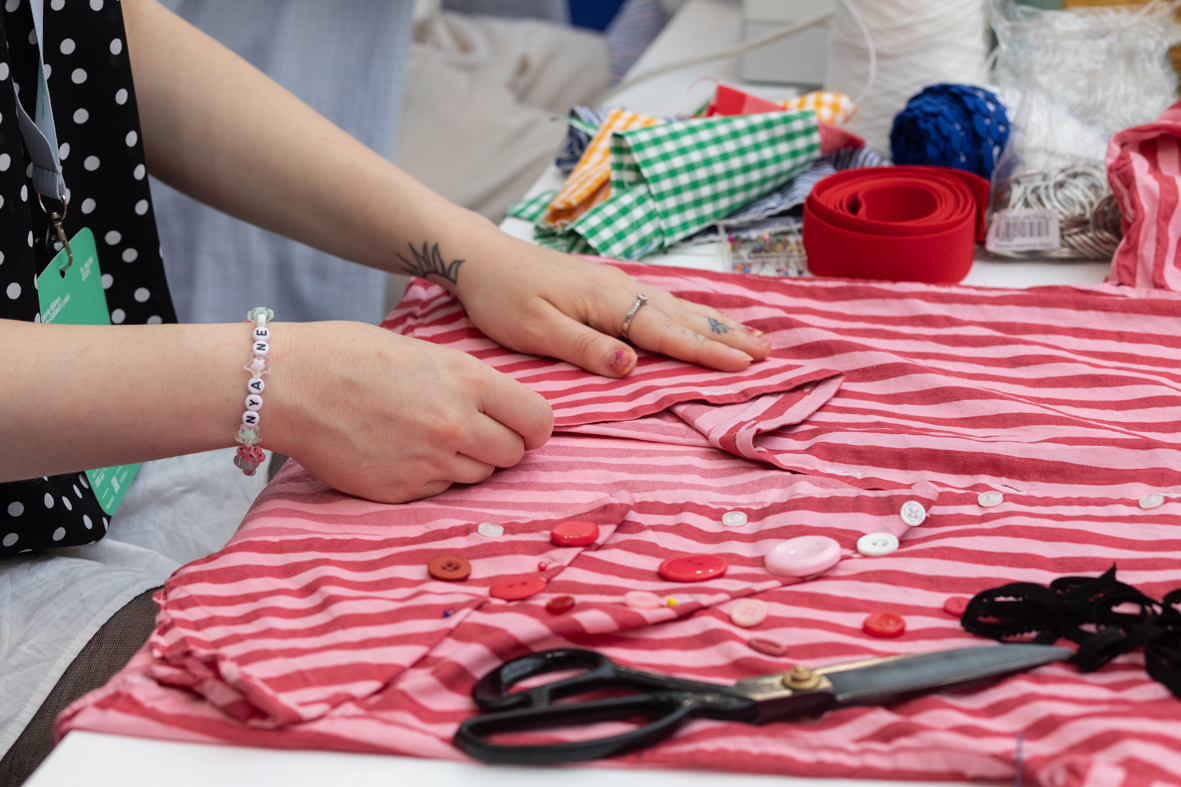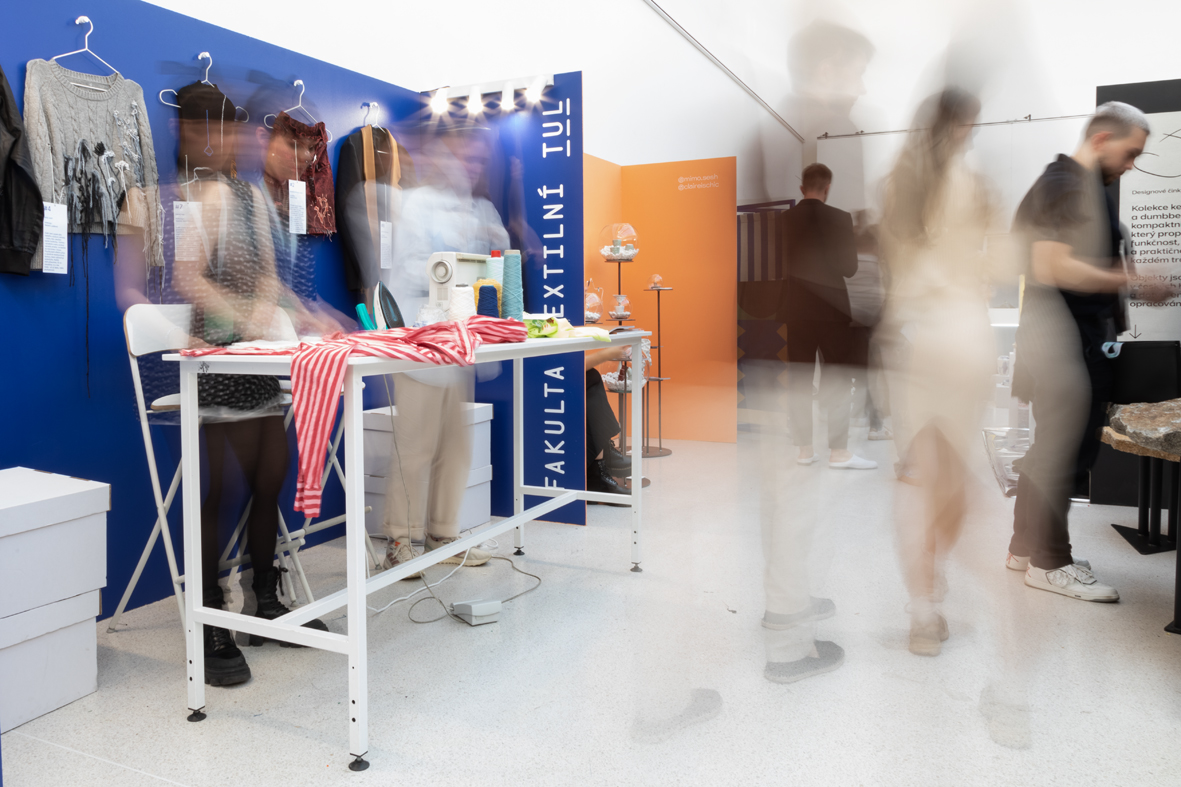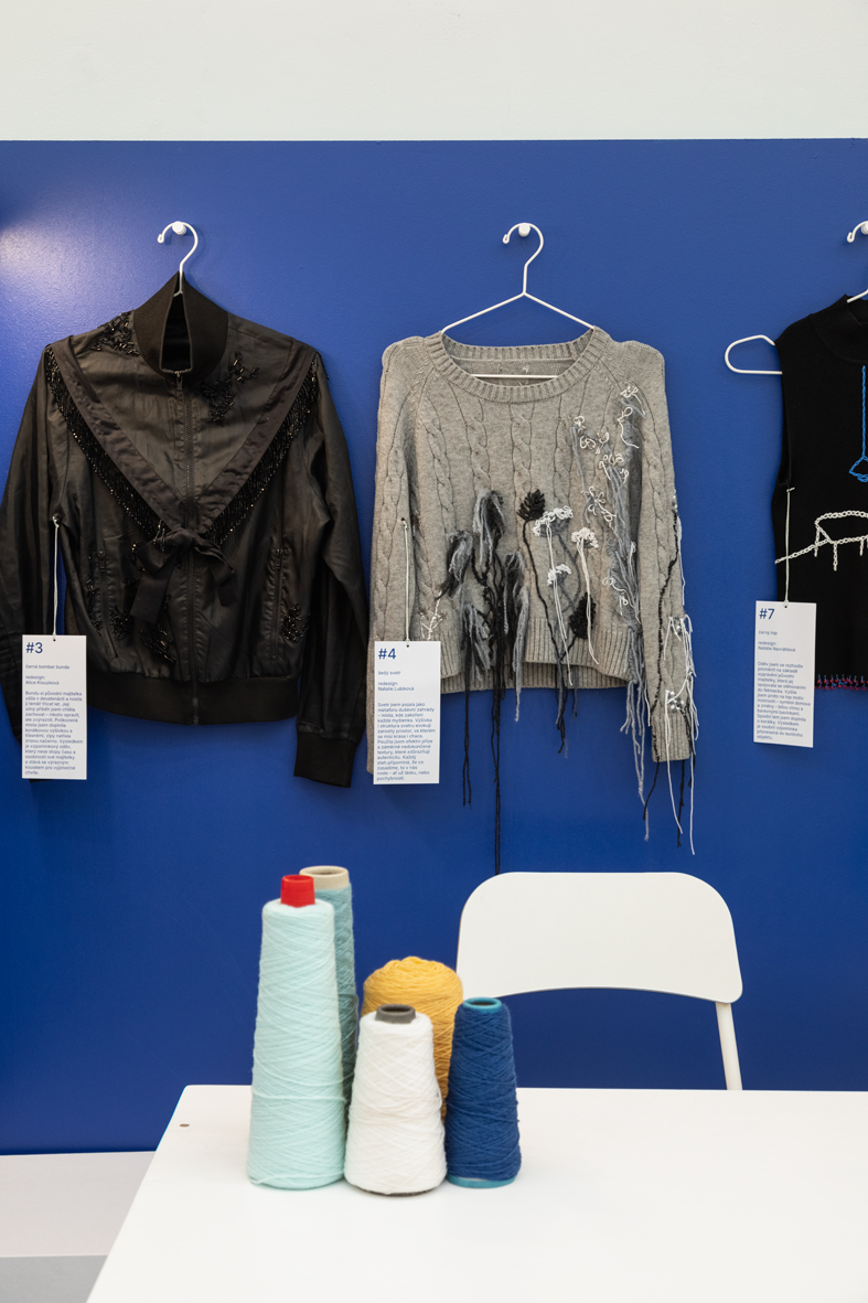 Výsledky projektu jsme představili během Czech Design Week 2025 v pražském Mánesu formou otevřeného ateliéru. Návštěvníci mohli sledovat tvůrčí proces i přinést své vlastní oděvy k úpravě. Studenti je na místě opravovali, zdobili, doplňovali knoflíky či korálky a vytvářeli nové vrstvy významu. Během čtyř dní vzniklo patnáct takto obnovených kusů. Výstava ukázala, že i malý zásah může oděvu vrátit hodnotu a prodloužit jeho život. Projekt spojil vzdělávání, designérskou praxi i veřejnou participaci – a potvrdil, že móda může být prostorem péče, dialogu a sdílení.